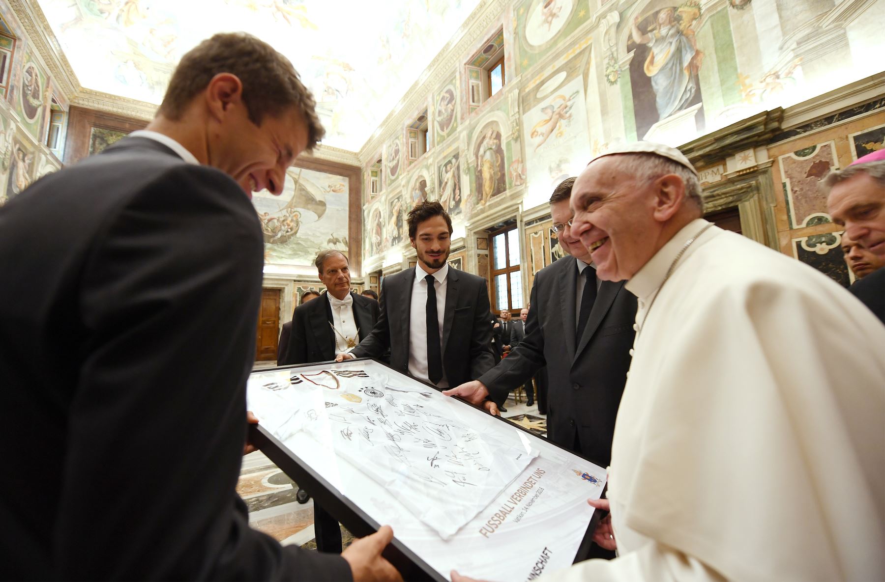 Francisco recibió este lunes en el Vaticano al seleccionado alemán, a cuyos miembros agradeció su contribución "a la construcción de una sociedad más justa y solidaria"