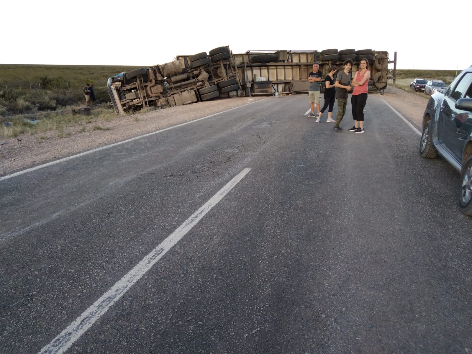 Producto del impacto el camión derrapó y volcó a la vera de la Ruta, dejando gran parte del cargamento sobre la cinta asfáltica.