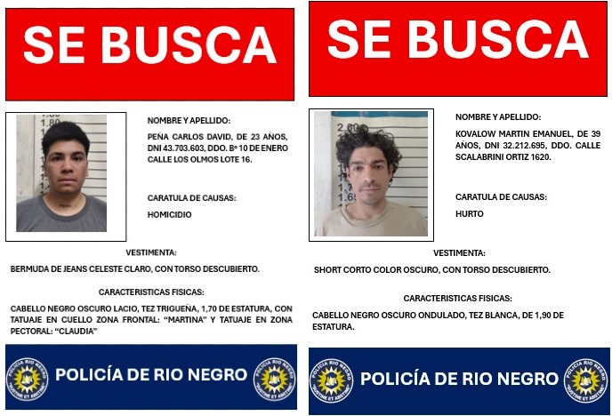 Los prófugos fueron identificados como Carlos David Peña de 23 años e imputado por homicidio y Martín Emanuel Kovalow de 29 años detenido por hurto.