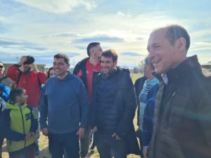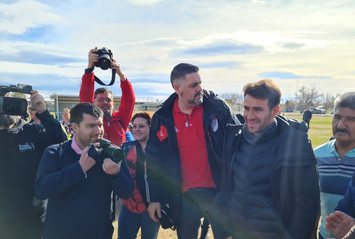 Además de los hinchas y aficionados, el gobernador Omar Gutiérrez y el vicegobernador, Marcos Koopmann, estuvieron en la bienvenida al jugador recientemente retirado.