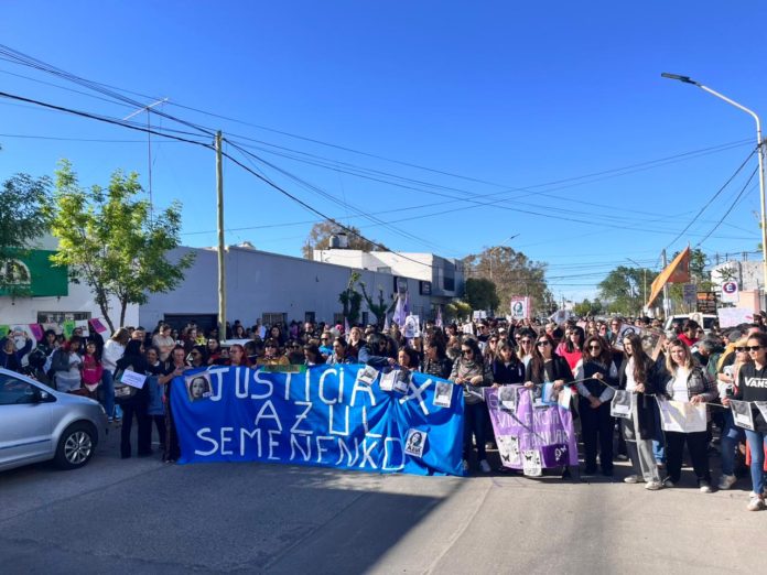Luego del sentido acto en el lugar donde trabajaba Azul, la columna de amigos y familiares partió con rumbo al Monumento a San Martín donde se sumará a los gremios y otras agrupaciones que se adhirieron al pedido de Justicia.