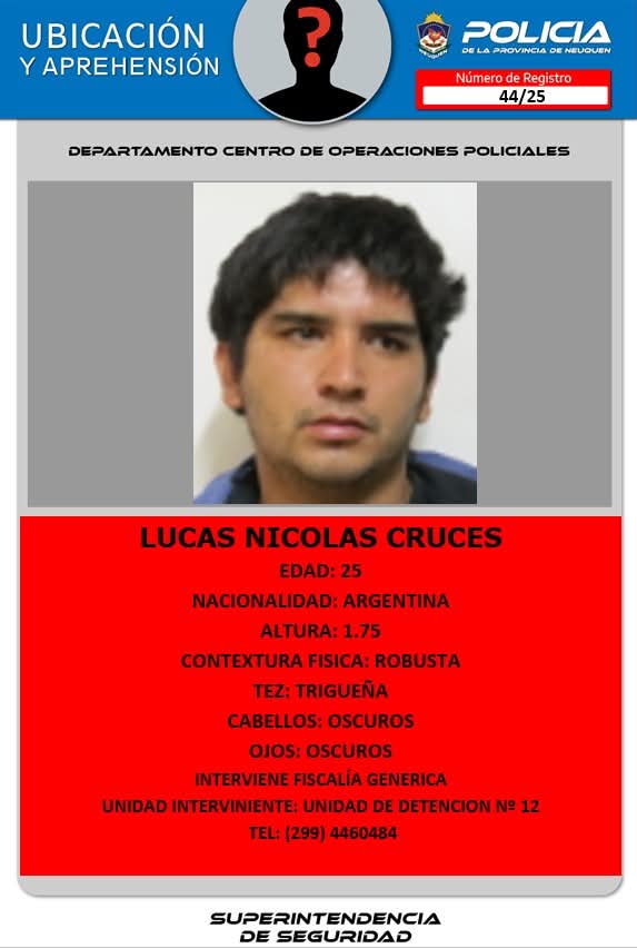 Neuquén.- Un operativo de búsqueda se mantiene activo en la ciudad de Neuquén, tras la fuga de cuatro internos alojados en la Unidad de Detención 12.