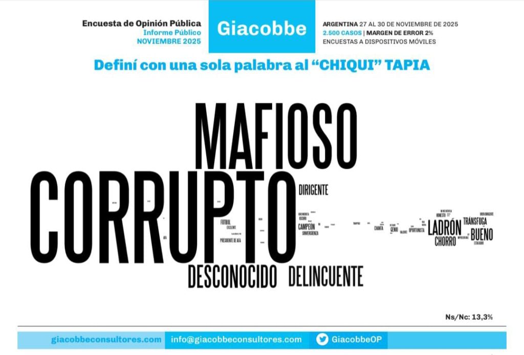 En cuanto a las palabras con las que la gente definió a Tapia en la encuesta fueron desde mafioso y corrupto hasta desconocido, dirigente y campeón.