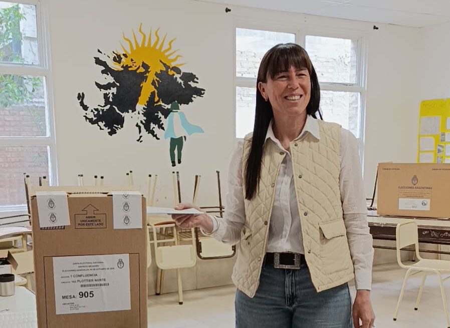 Neuquén.- La candidata a senadora por La Neuquinidad, Julieta Corroza, emitió su voto en CPEM 55 de la ciudad de Plottier en las elecciones legislativas nacionales.