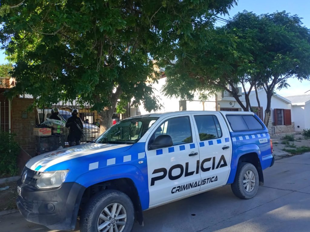 Neuquén.- Personal policial de diferentes divisiones participan de un allanamiento en un domicilio de la calle Primeros Pobladores de la ciudad de Neuquén.