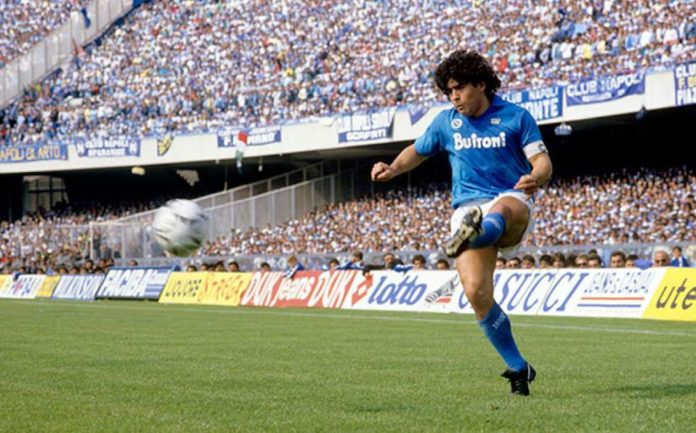 Maradona llegó a este equipo del sur de Italia en 1984 y lo llevó a los primeros planos europeos. Allí ganó dos Scudettos (1986-87 y 1989-90), una Copa Italia (1986-87) y una Supercopa de Italia (1990). En el plano europeo, se alzó con la Copa UEFA en 1988-89.