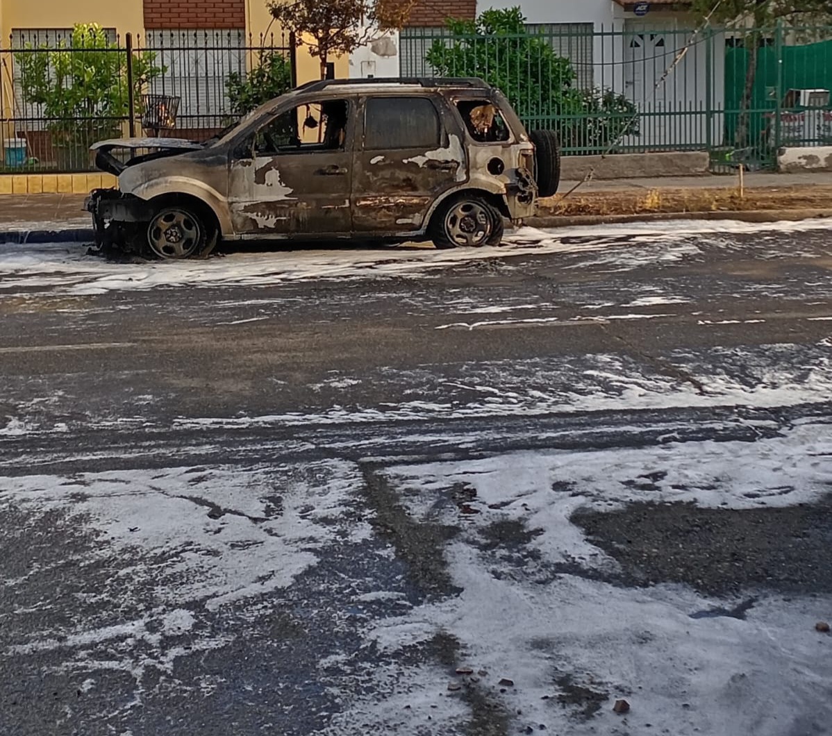Fuego y vehículos dañados en la calle Luis Beltrán