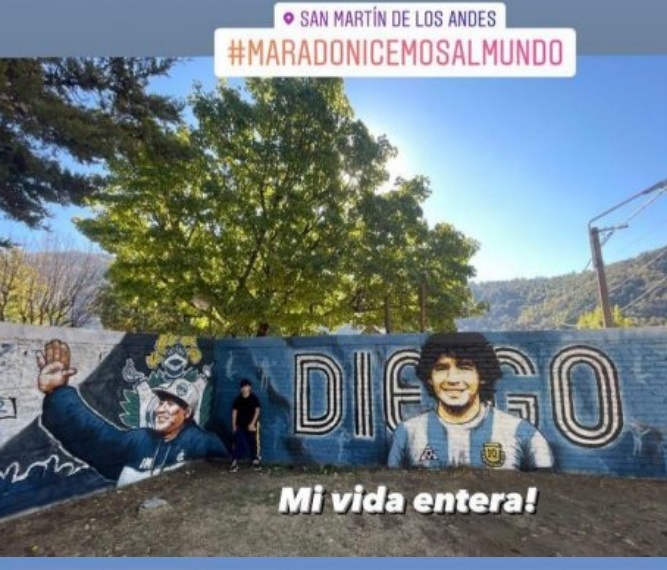 Gianinna Maradona estuvo en San Martín de los Andes y se sacó fotos en murales maradonianos