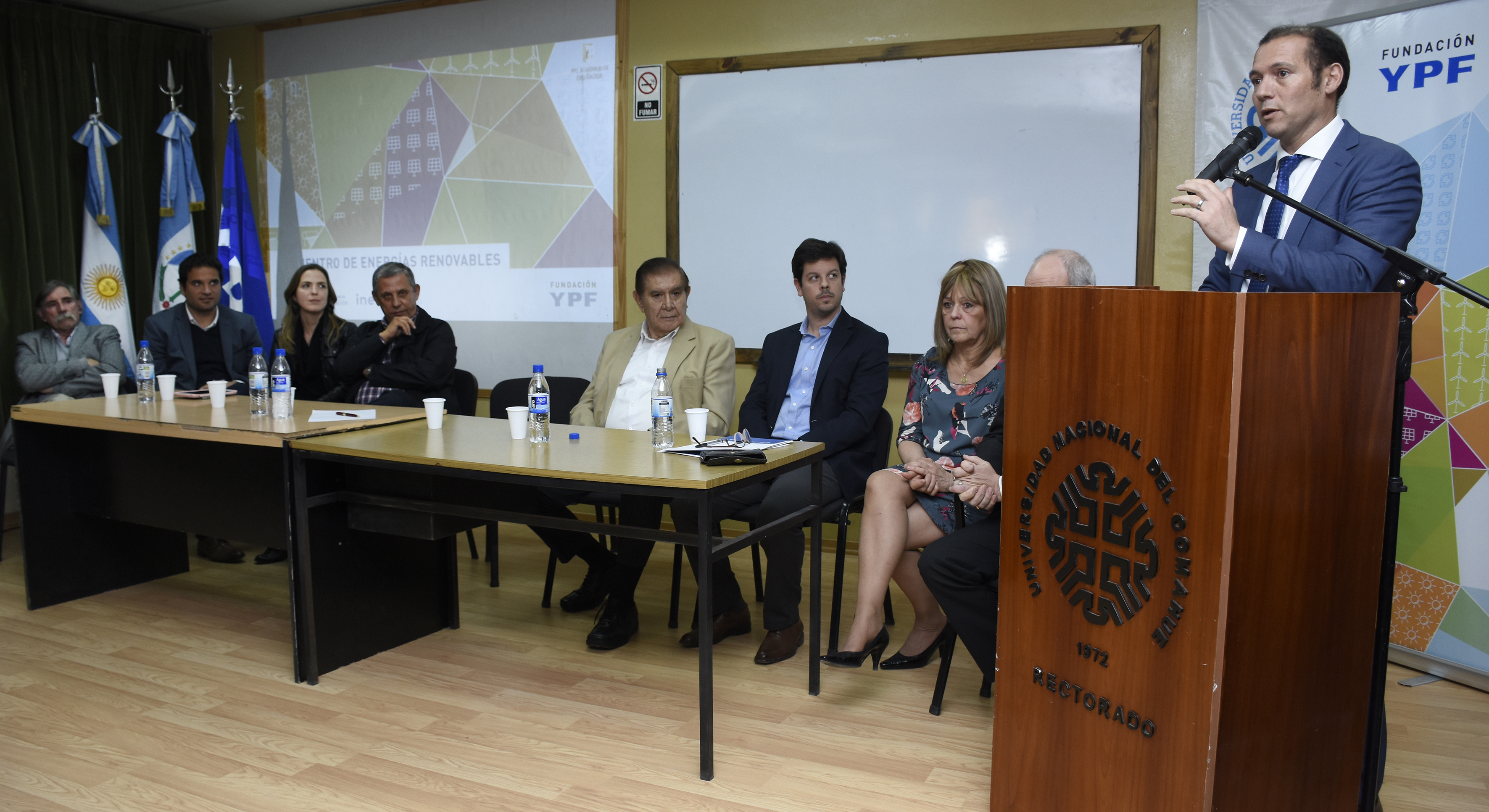 Neuquén.- El gobernador Omar Gutiérrez participó ayer del lanzamiento de curso de formación en energías renovables que se realizó en la Universidad Nacional del Comahue . Se trata de una acción conjunta entre el ministerio de Educación de la provincia, el Instituto Nacional de Educación Tecnológica, el ministerio de Energía de la Nación y la Fundación YPF.