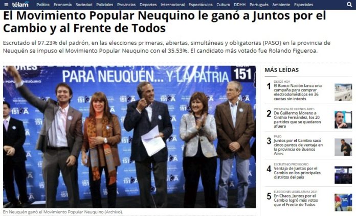 Neuquén.- Telam, la agencia oficial de noticias del Estado, publicó un nota en relación a los resultados de las PASO.