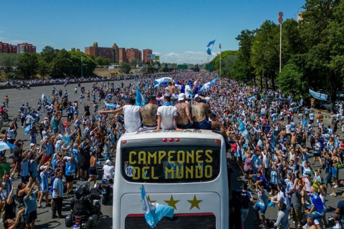 La comitiva albiceleste fue escoltada por una gran cantidad de policías motorizados.