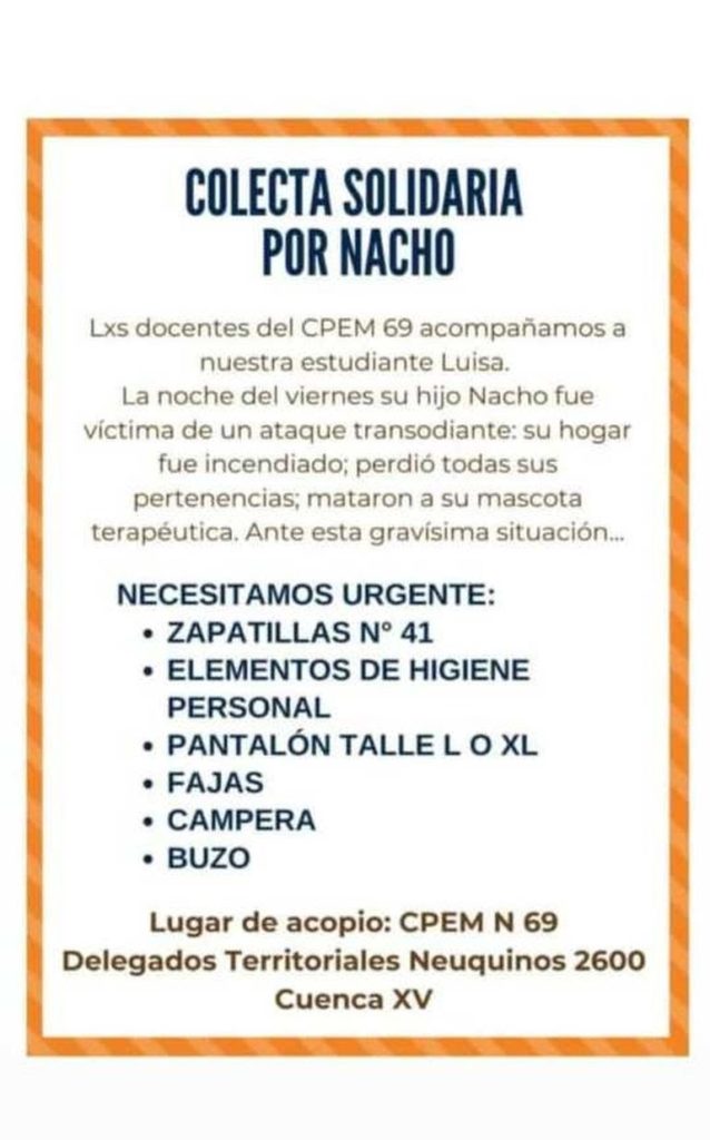 Amigos y docentes del CPEM 69, donde el joven cursó el secundario, están organizando una colecta para ayudarlo a recuperar su casa.