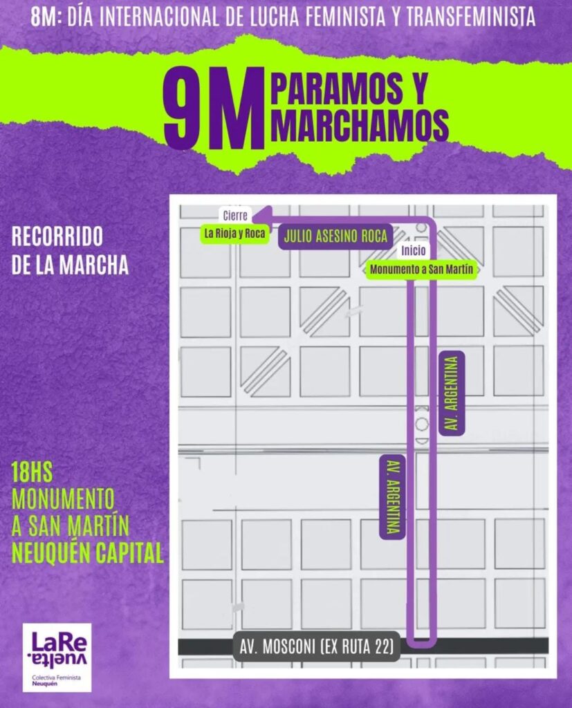 La marcha de movimientos feministas, políticos, gremiales y civiles se llevará adelante este lunes 9 de marzo en diferentes ciudades del país. No se llevó a cabo el 8 dado que cayó domingo y se pretende concretar un paro con intensidad ante las políticas adoptadas por el Estado Nacional.