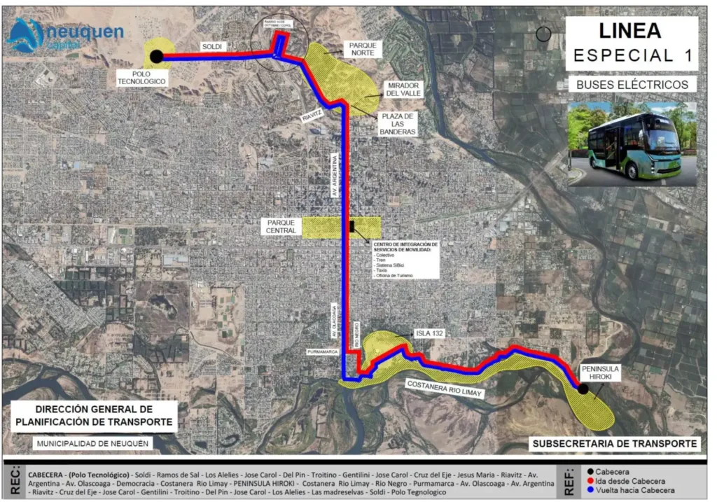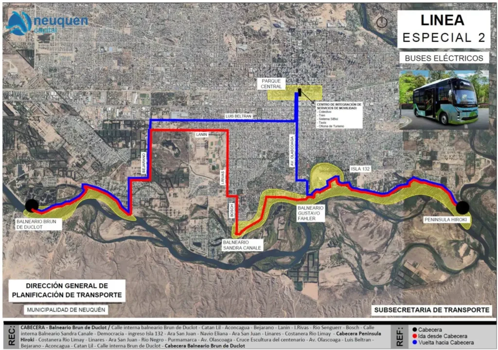 Los nuevos colectivos tendrán recorridos que combinarán la movilidad urbana con circuitos turísticos. Uno de los trayectos previstos conectará el norte de la ciudad —con opciones como Parque Norte o el Polo Tecnológico— con el sur, pasando por el centro y llegando hasta Isla 132 y Península Hiroki.