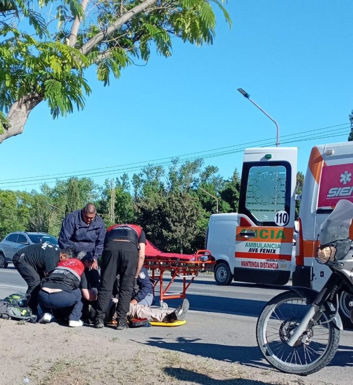 La ambulancia del SIEN arribó al lugar para asistir a la persona lastimada que generó el hecho y al resto de los involucrados asustados por lo vivido.