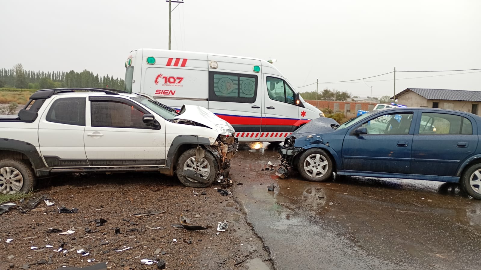 Según explicó el vocero policial, la situación comenzó cuando «la Strada transitaba por Bajada de Maida y pierde el control impactando a la moto y luego al otro rodado».