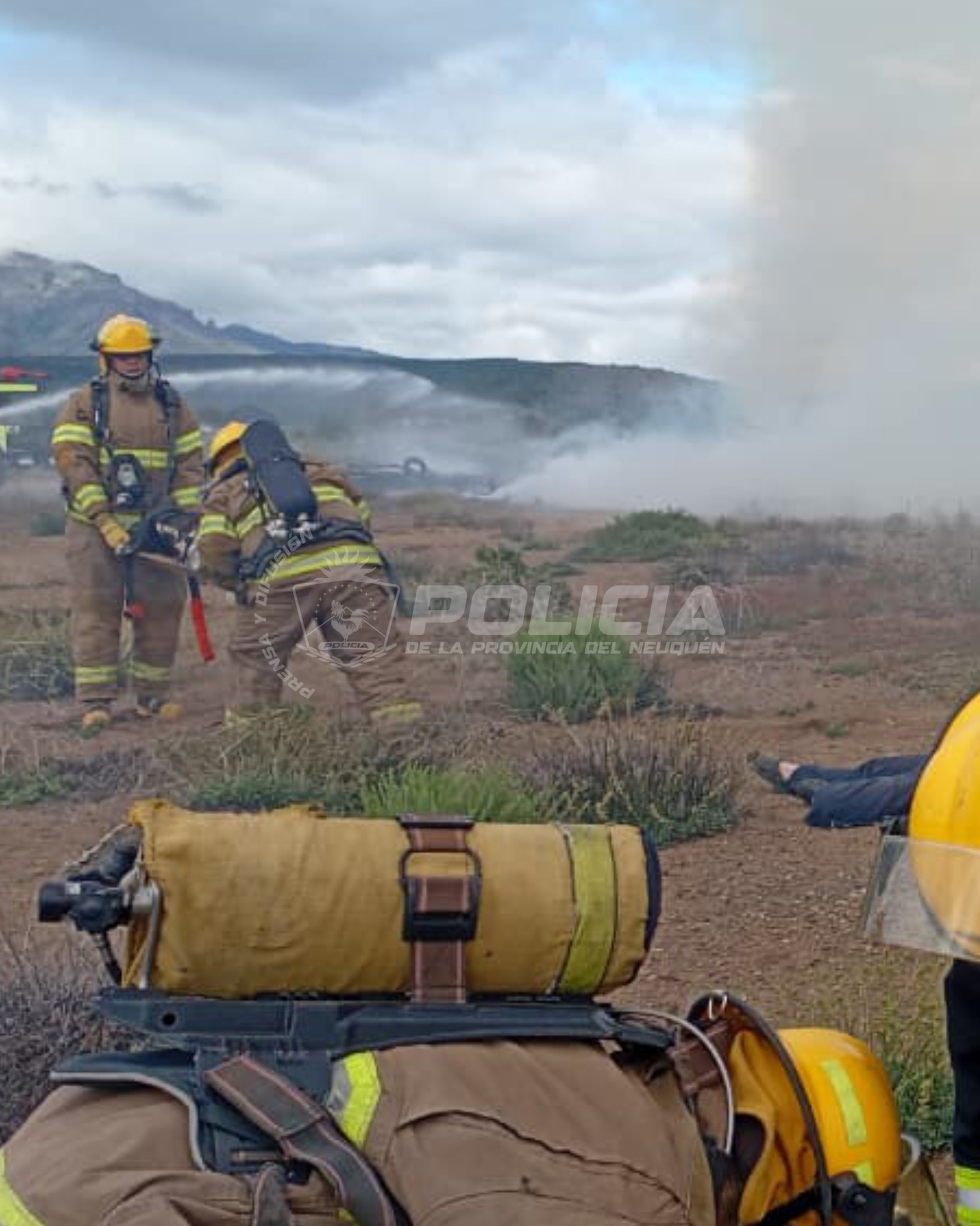 A las 10:05 se despacharon las autobombas previstas y los 17 efectivos de Bomberos Chapelco tomaron el mando del Puesto de Mando Móvil y del Comando de Incidente. En coordinación con equipos de la Administración Nacional de Aviación Civil (ANAC) y Bomberos Zapala, trabajaron en la extinción del fuego, el tendido de líneas de agua y el control de un reinicio secundario, que fue finalmente sofocado cerca de las 11.
