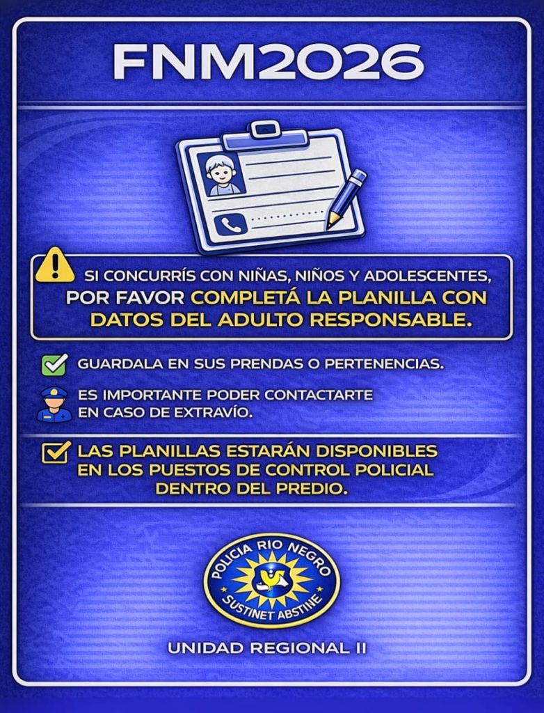 Se activará además un protocolo especial para la protección de niñas y niños. Se recomienda a las familias completar una planilla con los datos del adulto responsable y colocarla en la vestimenta o pertenencias de los infantes, lo que facilitará su rápida identificación en caso de extravío. Las planillas estarán disponibles en los puestos de ingreso al predio.
