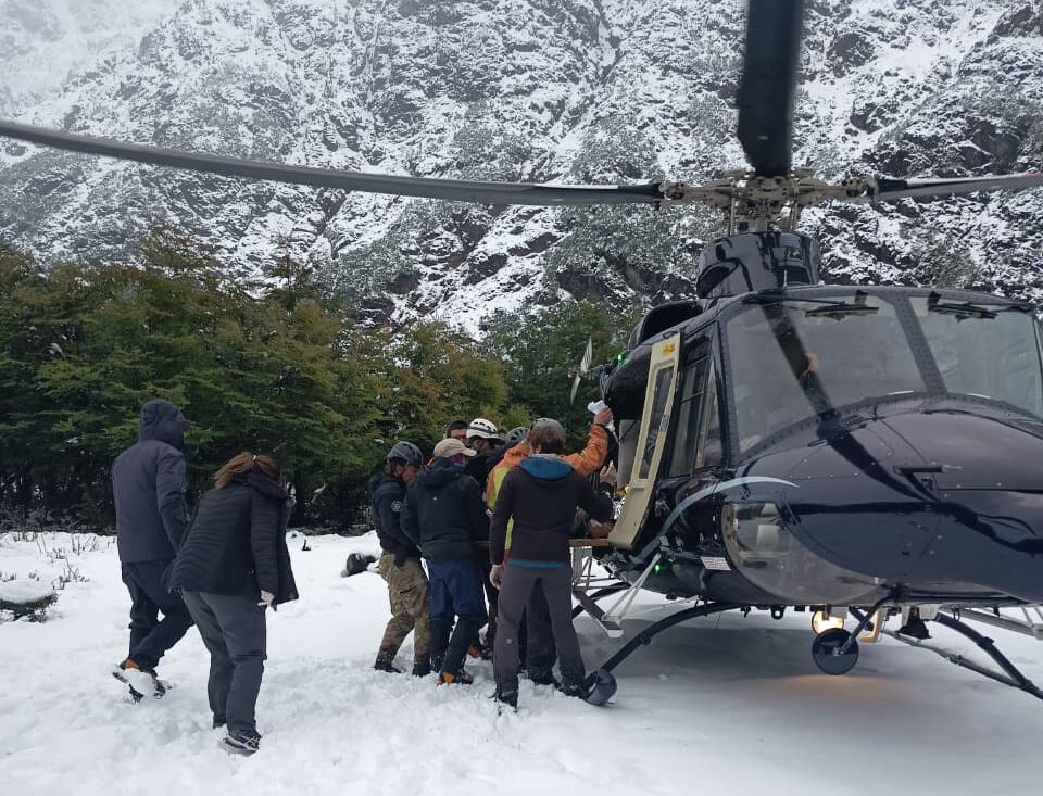 De inmediato personal de la Policía de Río Negro, Protección Civil, Salud Pública y Bomberos desplegaron el rescate en helicóptero a un hombre de 30 años, cursante de la escuela de guía de montaña de Buenos Aires.