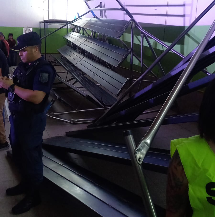Neuquén.- Una tribuna del gimnasio de Plottier colapsó esta noche cuando había gente presenciando un evento de patín organizado por el municipio.