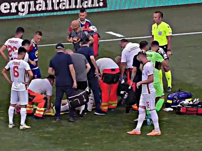 Todo sucedió por un choque entre el lateral derecho Ilkin Qirtimov y el alemán Marcel Heister, a los 33 minutos del primer tiempo y con empate a uno en el marcador.