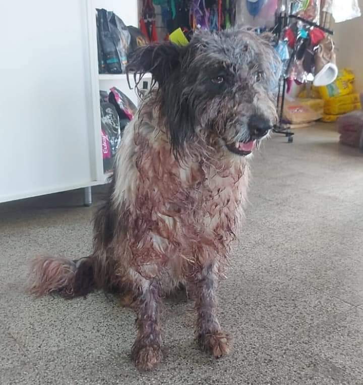 Tras lograr rescatarlo se dieron cuenta que tenía varias heridas cortantes en todo su cuerpo realizadas con un arma tipo machete. Junto a una protectora de animales, pudieron llevarlo a una veterinaria donde permanece internado. El animal recibió el nombre de León.