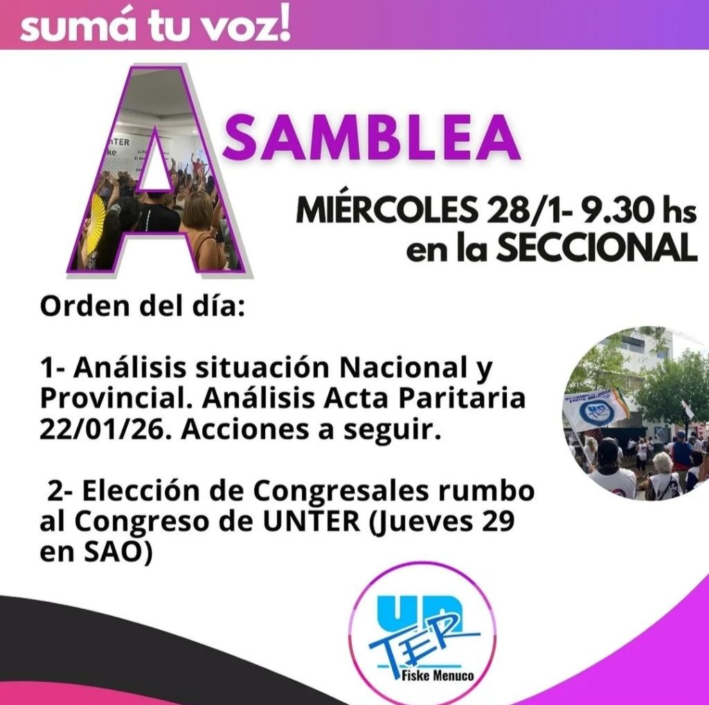 Río Negro.- Unter, a través de su seccional de la ciudad de Roca, convocó a una asamblea para analizar los puntos discutidos en la paritaria provincial llevada a cabo el pasado jueves en Viedma.